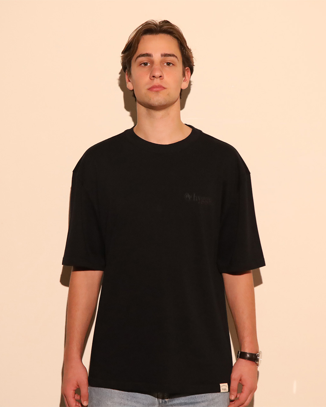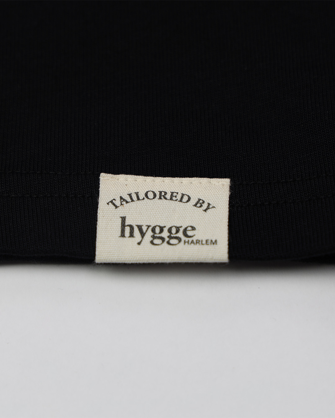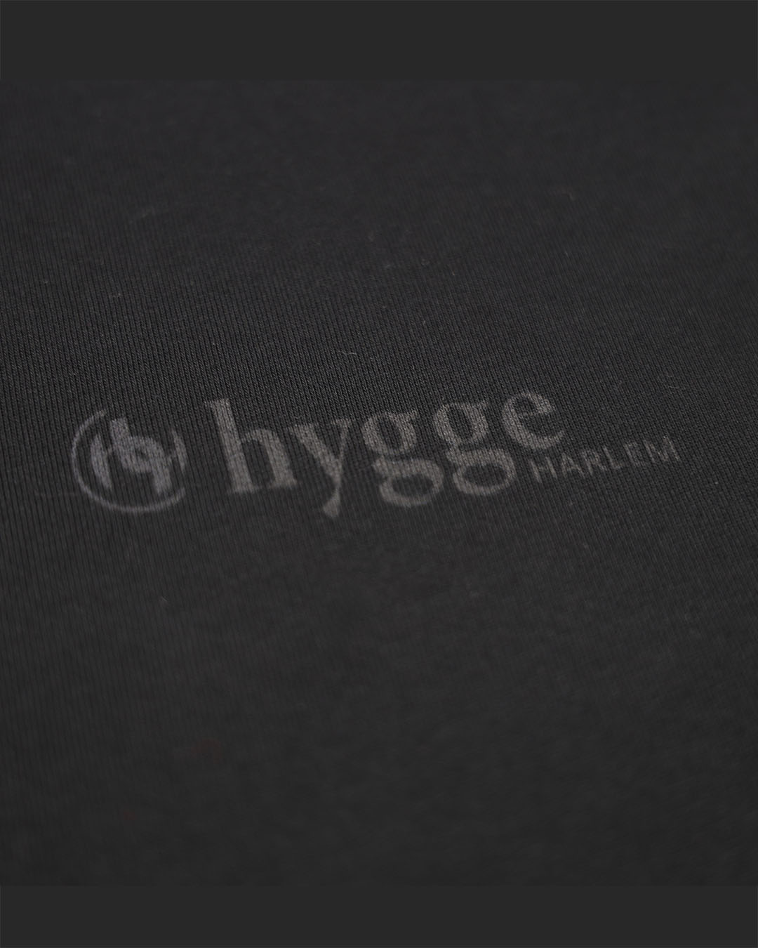 Regular-fit biologisch katoenen t-shirt met korte mouwen en ronde hals. Wave motion print op de achterkant en logo print op de voorkant. Met crème wit hygge HARLEM label aan de voorzijde.