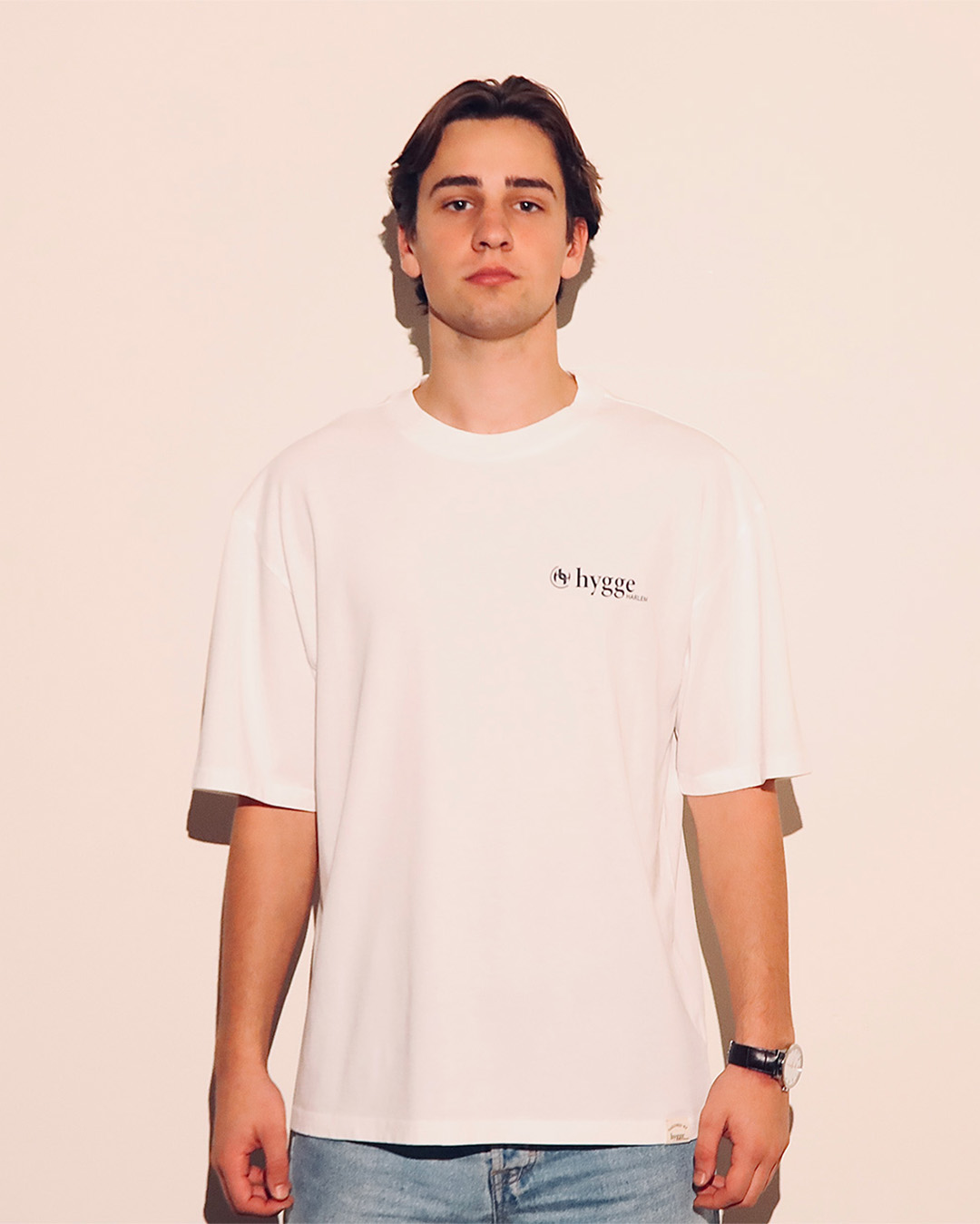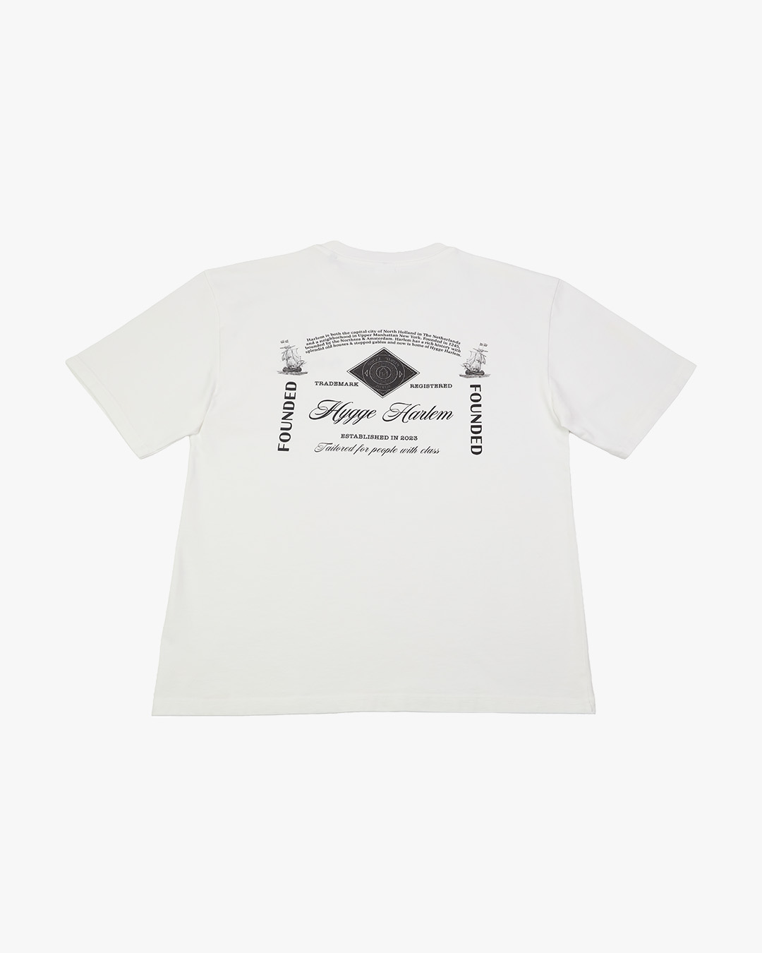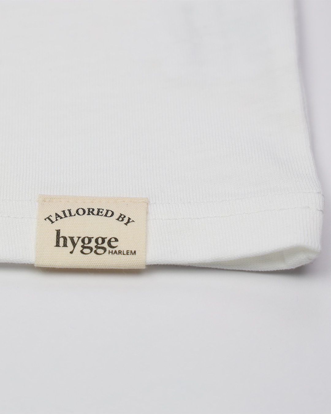 Regular-fit biologisch katoenen t-shirt met korte mouwen en ronde hals. Stijlvol klassiek shirt met old harbour print op de achterkant en een logo print op de voorkant. Met crème wit hygge HARLEM label aan de voorzijde.